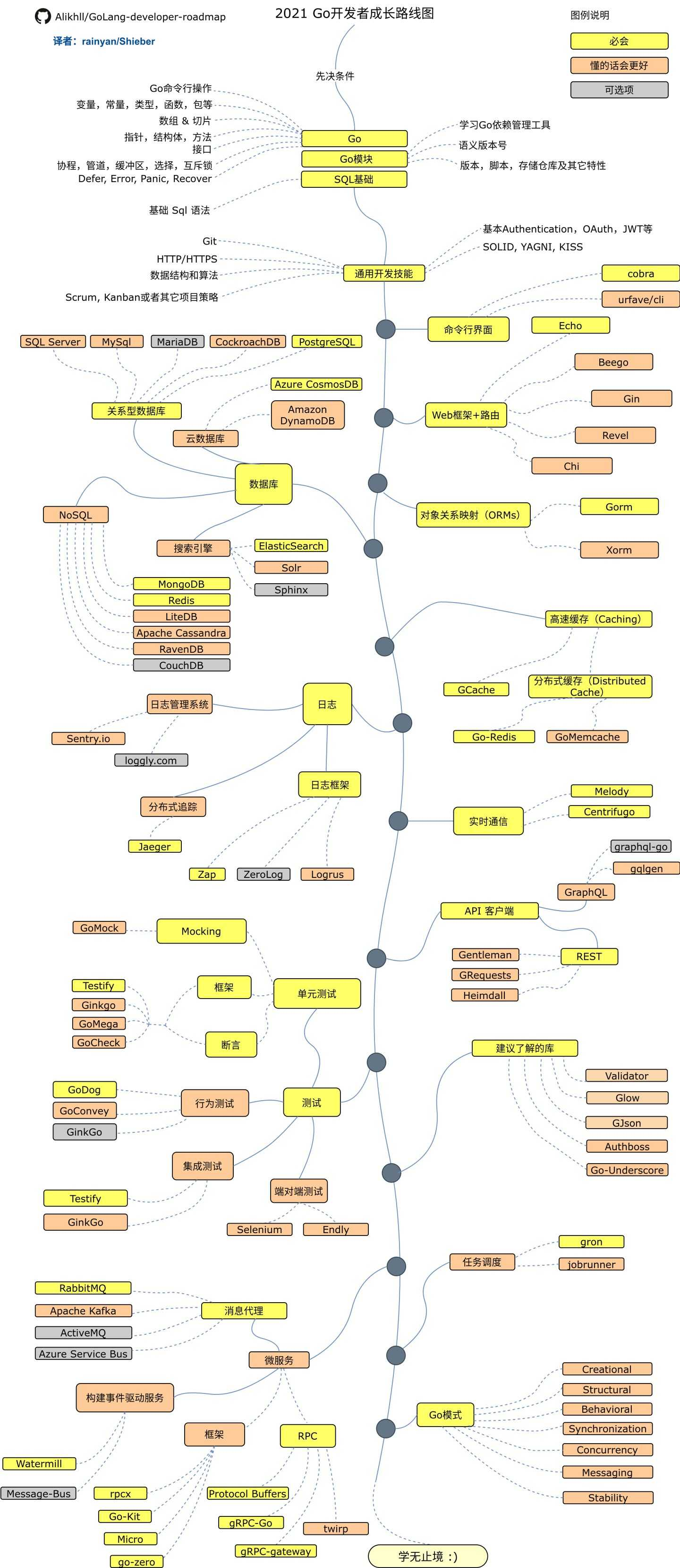该文档用来收集 Go 语言的一些学习路线图、视频课程、教程书籍等学习资料,旨在用来作为个人学习记录,会持续更新。参考文档位于文末的附录部分(感谢所有提供学习资料的作者)。