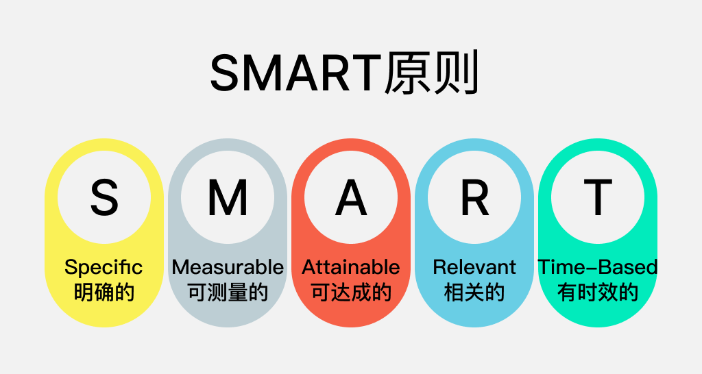 “有明确截止期限的(Time-bound)” 非常好理解,即目标需要有明确的截止日期,常用的目标周期有三个月、六个月、一年。我们需要注意避免目标周期太长,如果超过一年就可以把目标拆分成两个小目标去执行,同时也应避免制定周期太短的目标,如果一个目标的周期是一周,它更可能是个任务,或许目标是否过于轻易,我们需要重新评估。